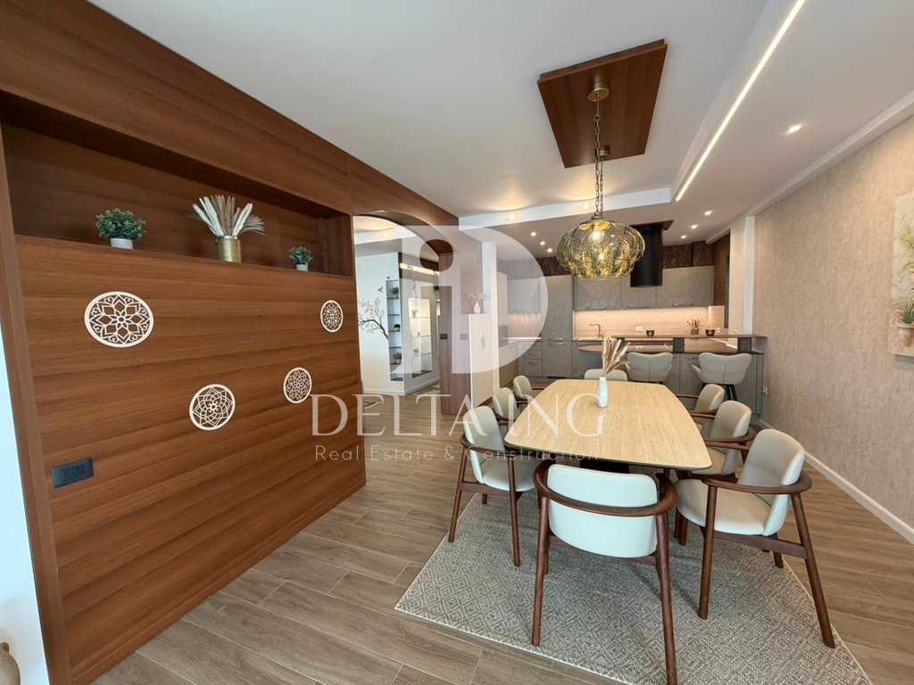 Interieri i apartamentit është konceptuar nga stilist austriak, me mobilim të realizuar tërësisht me porosi, ku çdo detaj është menduar për rehati dhe estetikë maksimale. Kuzhina është dizajni, plotësisht e pajisur me pajisje cilësore të markave të njohura, ideale si për përdorim të përditshëm ashtu edhe për pritje.