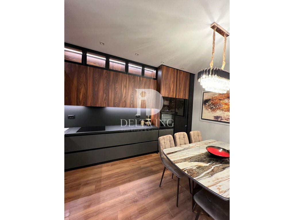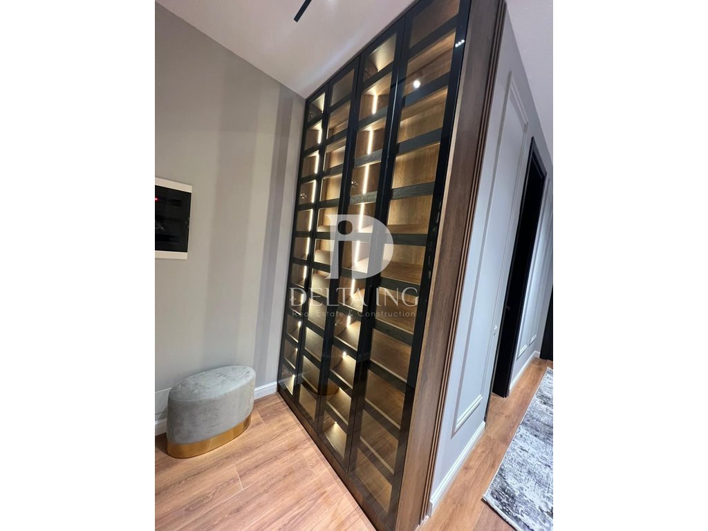 Apartamenti është i investuar në detaj me projekt arkitektonik, duke ofruar një kombinim të qartë mes elegancës dhe funksionalitetit. Ambienti i ndenjes dhe kuzhina janë të bollshme, me përfundime cilësore si detaje mermeri dhe dru arre, duke krijuar një atmosferë të ngrohtë dhe moderne.