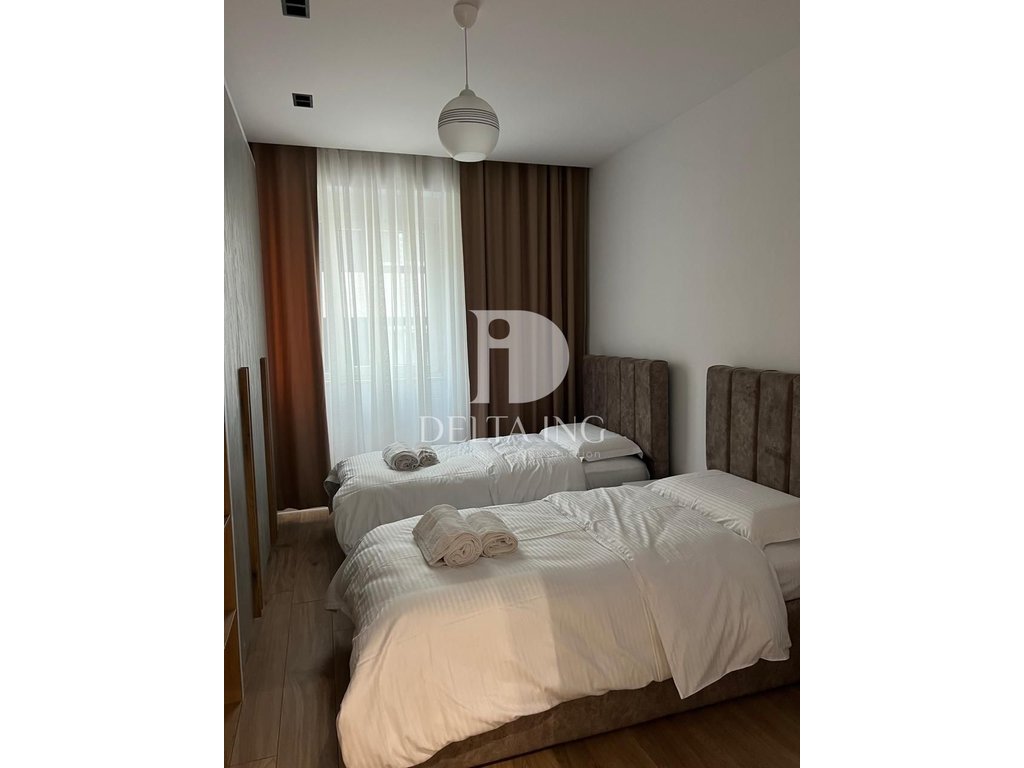 Apartamenti ofron organizim shumë funksional me sallon të bollshëm dhe kuzhinë moderne, dy dhoma gjumi dhe dy tualete të realizuara me kujdes në detaj. Hapësirat janë të menduara për komoditet maksimal dhe jetesë praktike.